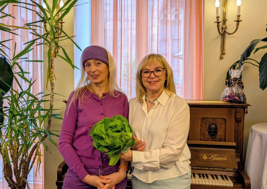 Barbara Regitz übergab ihr ein kleines Präsent und allen Damen einen besonderen Blumenstrauß: Scherzers Kopfsalat am Wurzelballen, die Vitaminspritze aus dem Nürnberger Norden. Mit dieser sympathischen kleinen Geste, die inzwischen zur Tradition geworden ist, beendete Barbara Regitz den ersten Interkulturellen Ladies Lunch des Jahres.